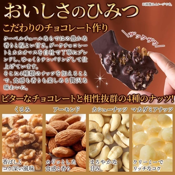 ✅【こだわりの素材と製法】ハイカカオのクーベルチュールを使用し、チ職人の技で仕上げました。ナッツの食感とカカオのほろ苦さが絶妙に絡み合い、心地よい後味を残します。健康志向の方にもおすすめできる美味しさです。