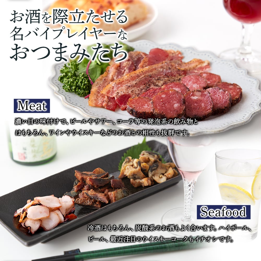 ✅【おとなの贅沢ギフト5種】おつまみボックスがあればお肉と魚介を同時に楽しめる!!お酒にぴったりなお肉と魚介のおつまみです☆